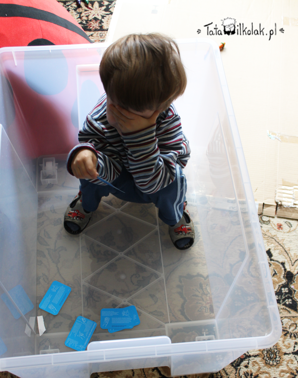 Nad placem zabaw leży pokrywka od jakiejś średniej Samli, bo trochę się boimy, żeby nie wyskoczył. Do tej pory nie próbował, ale kto wie co będzie, kiedy się zadomowi. Mostki są dosyć wysokie 🙂